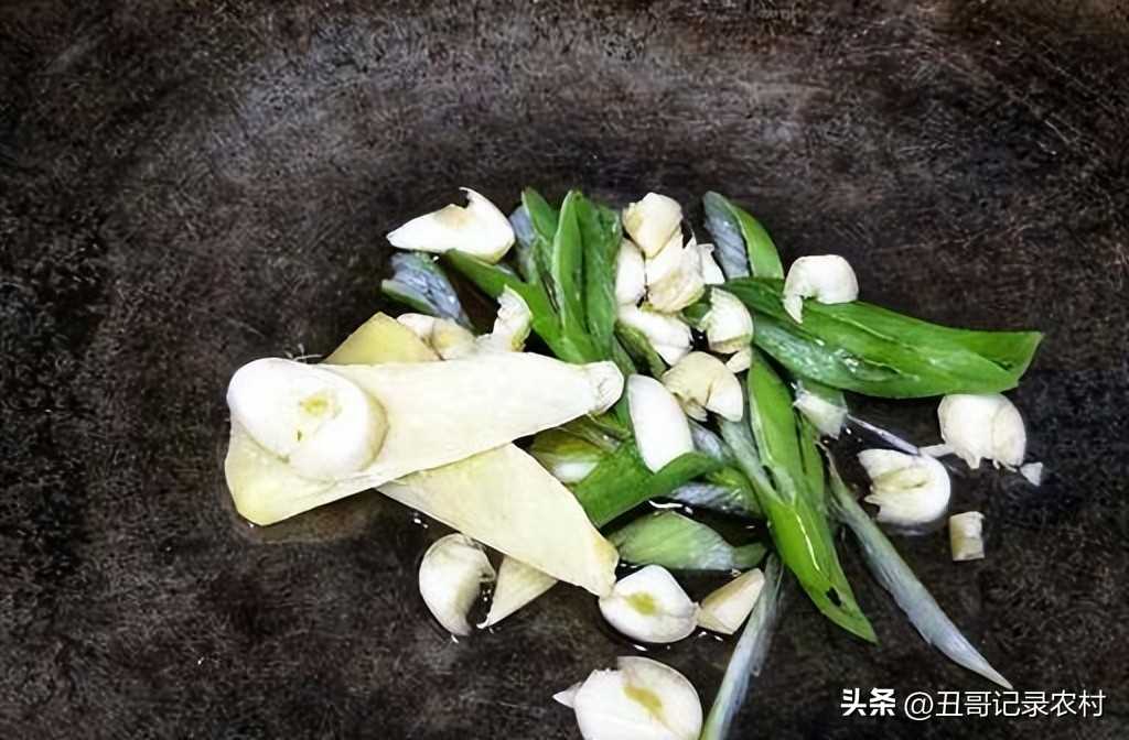 步骤四:锅里面加些油,爆香蒜,然后加入葱段和蒜片,兜一下;
