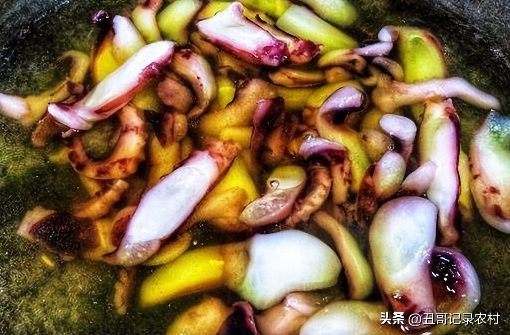 然后,步骤二的水倒了,然后另外加入水煮沸,然后添加些许料酒,倒入章鱼片,等它变硬就可以过冷河了,捞起备用;